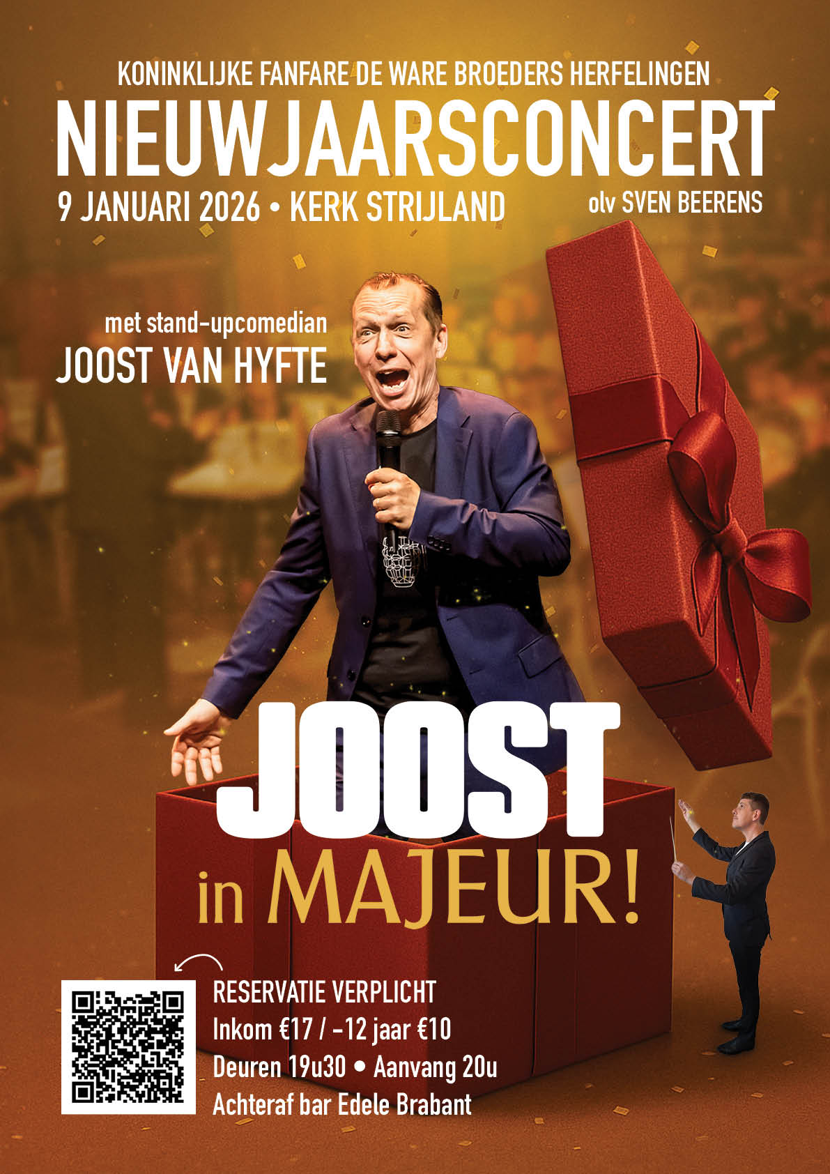 Laat je meevoeren door meeslepende fanfaremuziek en geniet van een flinke dosis humor met stand-up comedian Joost Van Hyfte als speciale gast.